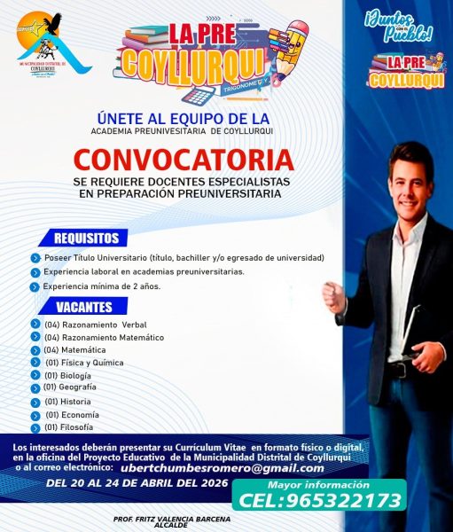 Plaza de Armas S/N, Coyllurqui – Coyllurqui – Cotabambas – Apurímac – Perú – 03221