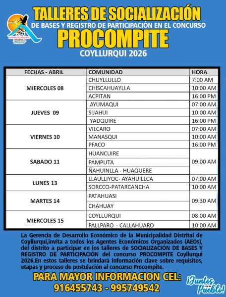 En Noticias‚ Obras y Proyectos 𝗧𝗔𝗟𝗟𝗘𝗥𝗘𝗦 𝗗𝗘 𝗦𝗢𝗖𝗜𝗔𝗟𝗜𝗭𝗔𝗖𝗜𝗢𝗡 𝗗𝗘 𝗕𝗔𝗦𝗘𝗦 𝗬 𝗥𝗘𝗚𝗜𝗦𝗧𝗥𝗢 𝗗𝗘 𝗣𝗔𝗥𝗧𝗜𝗖𝗜𝗣𝗔𝗖𝗜𝗢𝗡 𝗘𝗡 𝗘𝗟 𝗖𝗢𝗡𝗖𝗨𝗥𝗦𝗢 𝗣𝗥𝗢𝗖𝗢𝗠𝗣𝗜𝗧𝗘 𝗖𝗢𝗬𝗟𝗟𝗨𝗥𝗤𝗨𝗜 𝟮𝟬𝟮𝟲